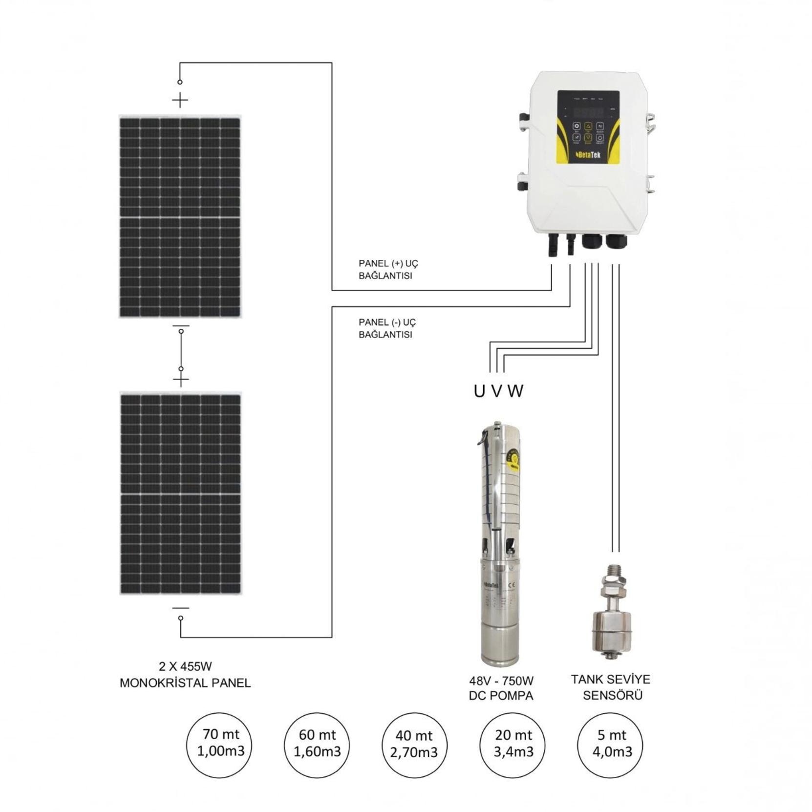 Solar Dalgıç Pompa, elektrik şebekesine ihtiyaç duymadan, doğrudan güneş panellerinden elde edilen elektrik enerjisini kullanarak, suyu yer altındaki derin kuyulardan yüzeye çıkarmak için tasarlanmış bir su pompalama cihazıdır.