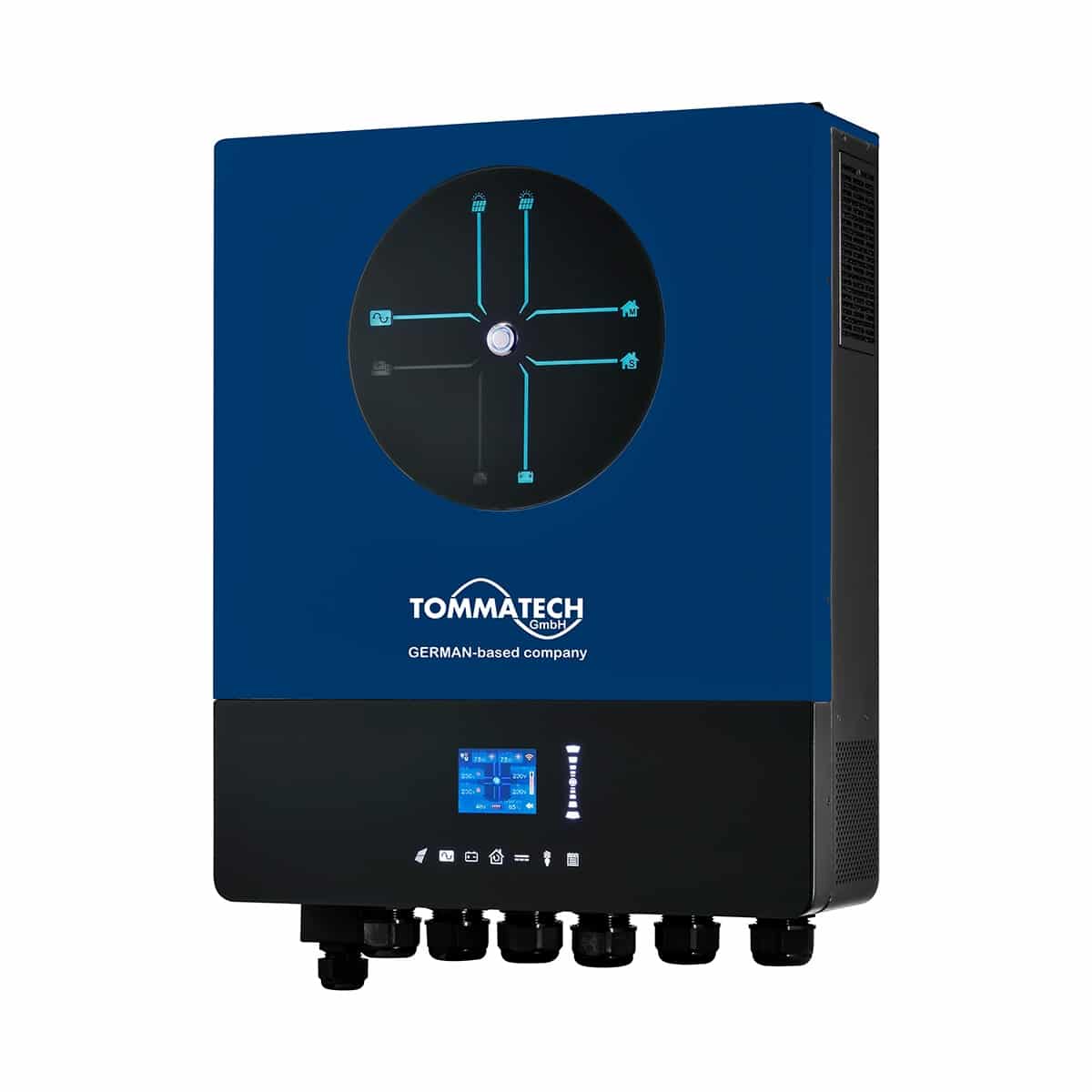 İleri Seviye İzleme ve Kontrol: Yerel LCD ekran ve güçlü Tommatech bulut uygulaması/ yazılımı ile üretimi, tüketimi, akü durumunu ve şebeke etkileşimini gerçek zamanlı izler, raporlar alır, cihaz ayarlarını uzaktan yapabilirsiniz. EV şarj istasyonu entegrasyonu için hazırdır.